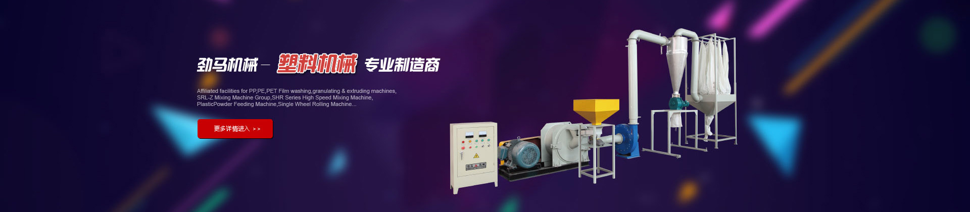 公司創(chuàng)建十多年以來(lái),十分注重人才的培養(yǎng),公司憑借雄厚的技術(shù)力量、優(yōu)良的生產(chǎn)設(shè)備及優(yōu)良的檢測(cè)設(shè)備,確保了產(chǎn)品的品質(zhì),保證了客戶(hù)的利益。我們的產(chǎn)品有:PET薄膜清洗、造粒、擠出等周邊設(shè)備、SRL-Z混合機(jī)組、SHR系列高速混合機(jī)、塑料粉末加料機(jī)、單盤(pán)、雙盤(pán)收卷機(jī)、傳動(dòng)上料機(jī)、PE磨粉機(jī)、PVC磨粉機(jī)、邊料回收機(jī)、干燥機(jī)、破碎機(jī)、...